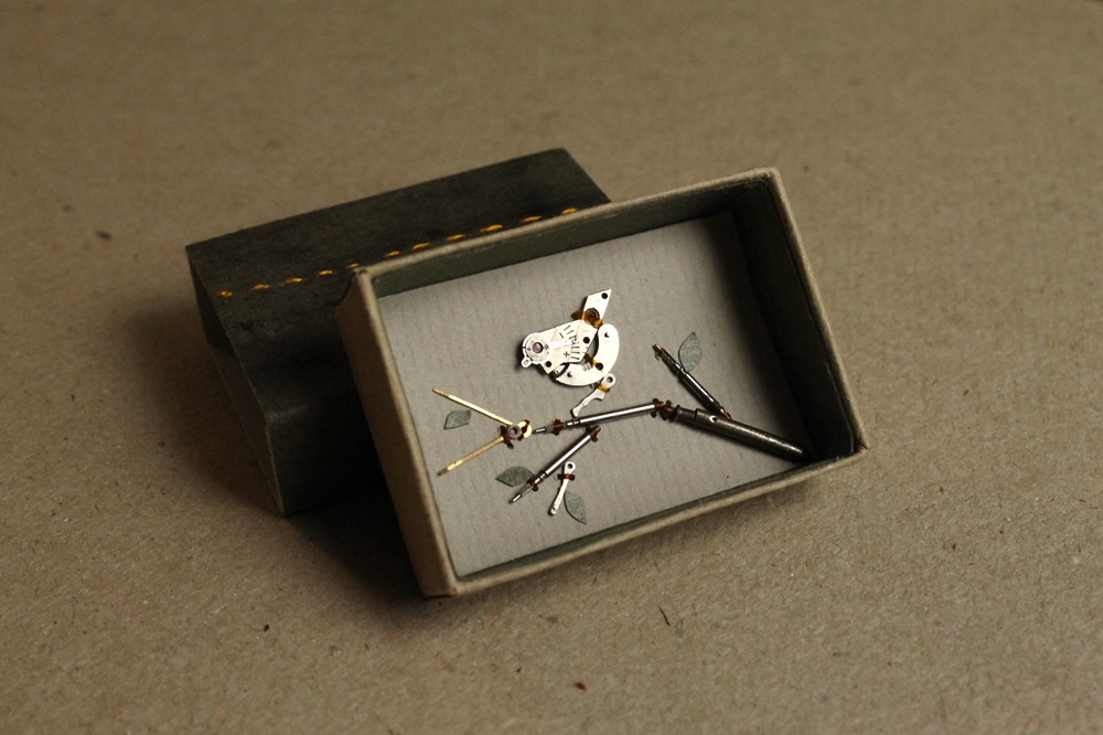 So, yet again I put a bird on it. I can't help myself when I find those little birdy heads in my box of watch junk. V is on his way to Rome, a business trip, a biennale. I'm home, waiting for the sound of rain and the sound of snow melting to stop. I am sleeping all wrong again. Not my usual wrong, but even more wrong.