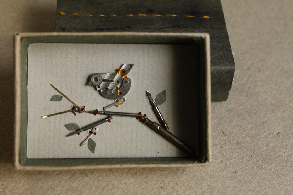 vintage watch parts, paper, hand dyed Japanese paper, vintage silk threads