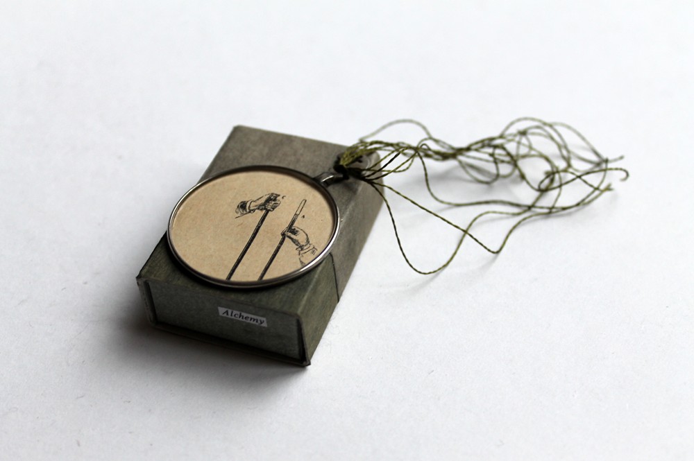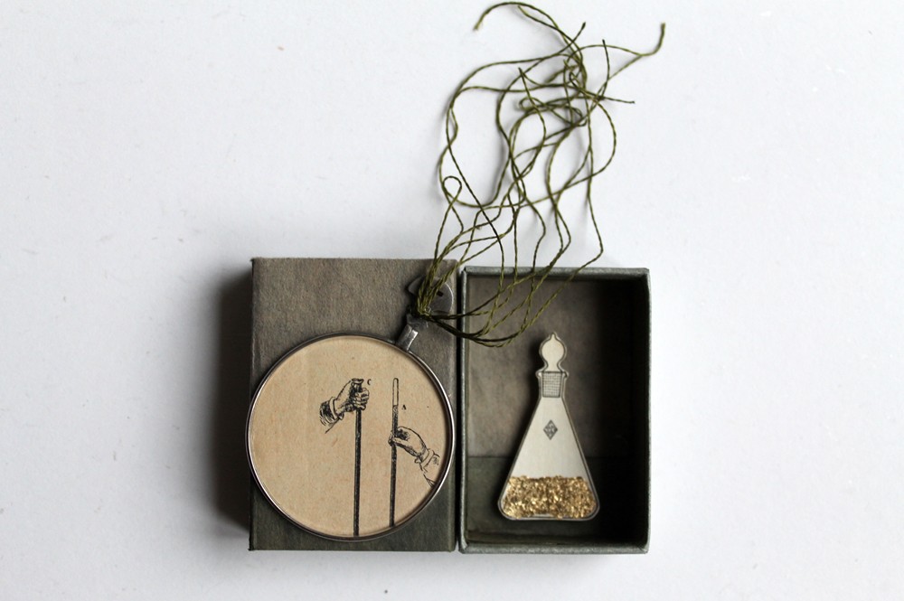 eighteen December 18, 2012 (vintage optical lense, vintage school book illustrations, vintage ensyclopedia text, hand-dyed Japanese paper, paper, antique silk thread, imitation gold leaf) And I have absolutely no ideas for tomorrow's matchbox. Wish me luck!