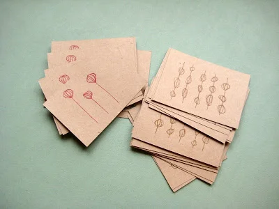 And the giveaway part of this post! Leave a comment to this blog post by the end of Wednesday (whatever timezone, I'll write down all names on Thursday morning) and you have a chance to get a set of eight gocco printed minicards with envelopes, 2 brown kraft, 2 off white, 2 gray and 2 white handmade paper ones. I'll be giving away two (2) sets to randomly chosen people.