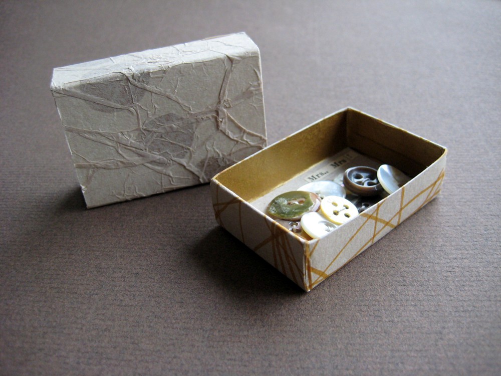 (tissue paper, cardboard, buttons, linen thread, text from a vintage dictionary)