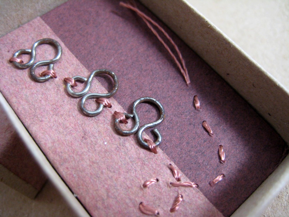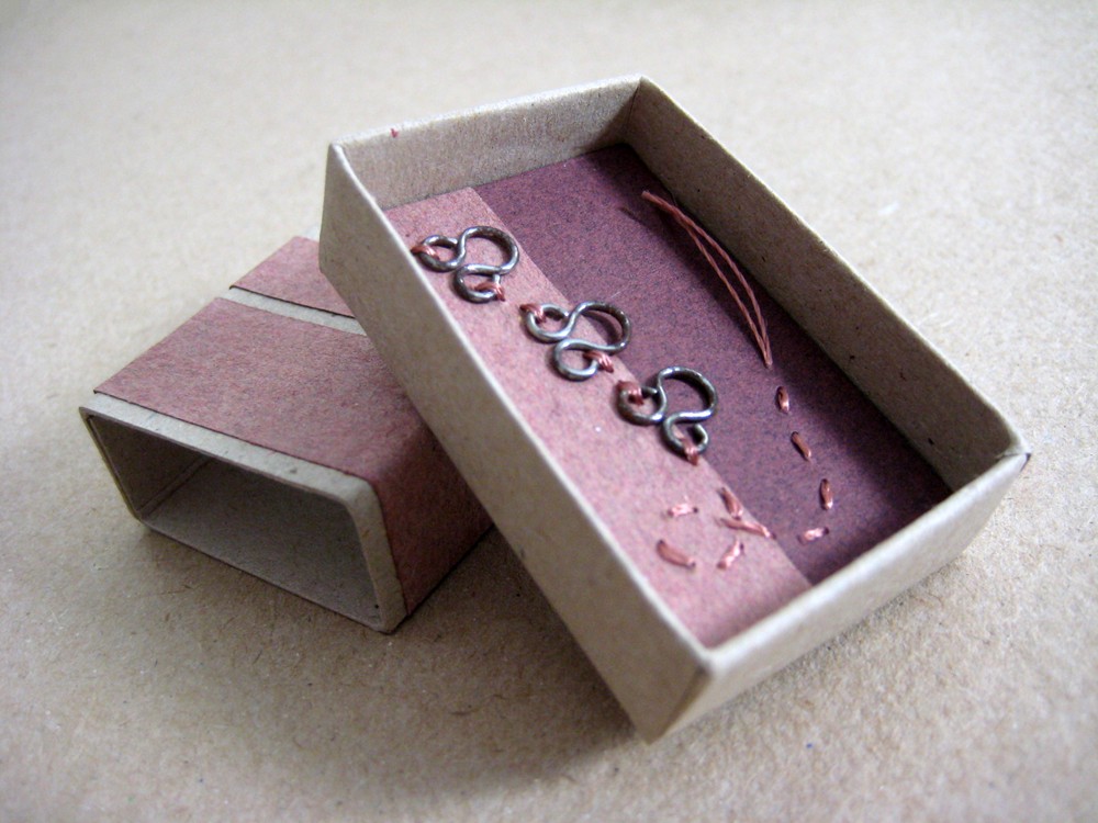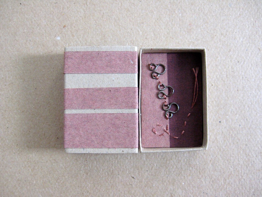 Seven December 5, 2009 (paper, board, hook eyes, thread) Second day of fever. I'm staying in bed, watching movies, making tiny things.