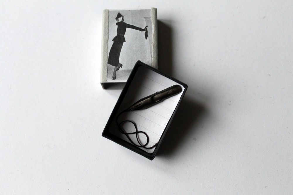 (vintage pen nib, vintage illustration, vintage silk thread, paper)