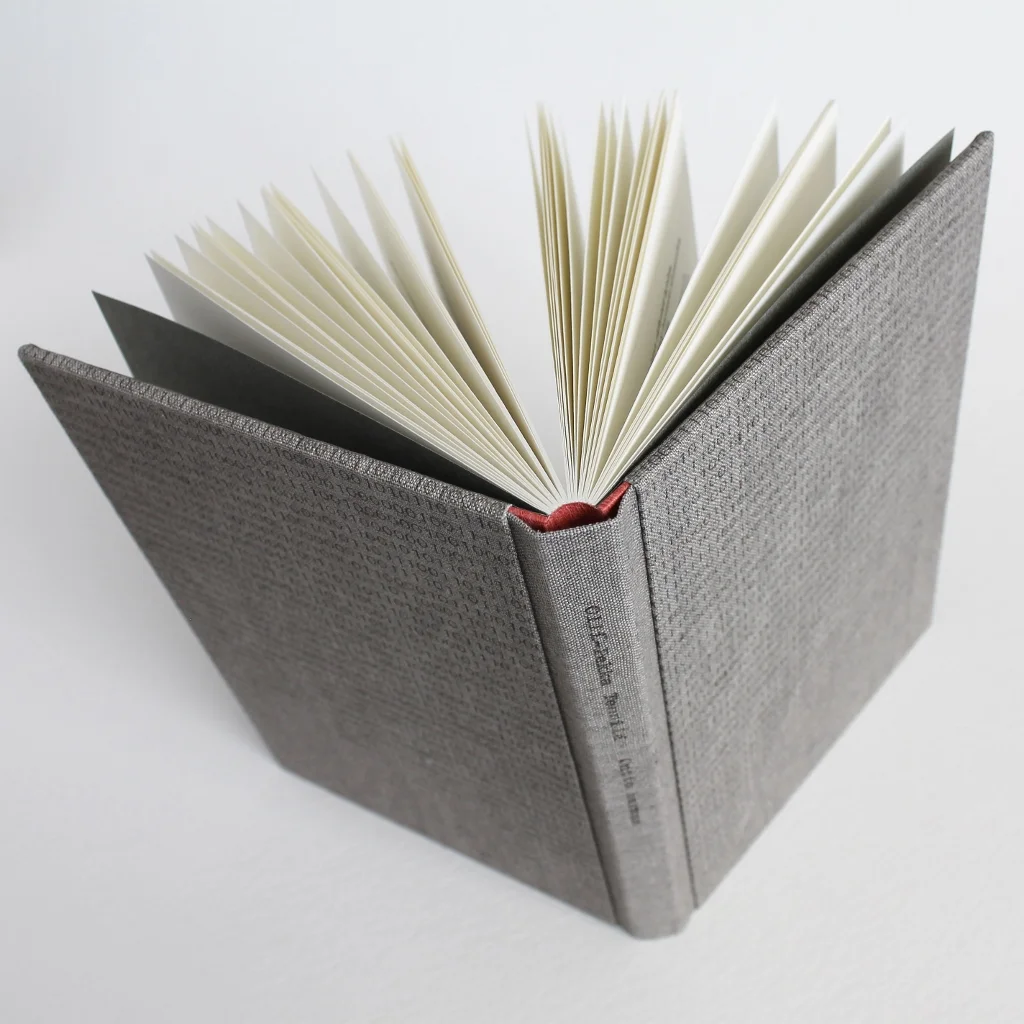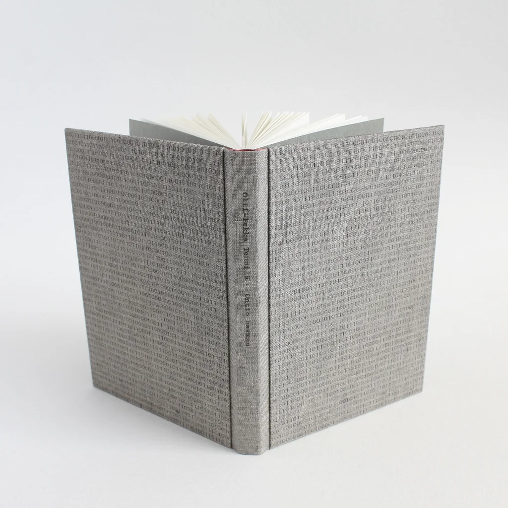fine binding by Kaija Rantakari, 2017  Ontto harmaa by Olli-Pekka Tennilä (Poesia, 2016)  sewn boards binding with linen covers and typewritten binary code